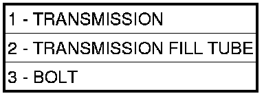 18. Remove the bolt (3) holding the transmission fill tube (2) to the transmission (1).