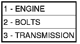 27. Remove all remaining bolts (2) holding the engine (1) to the transmission (3).