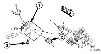 WARNING: To service the speed control switch, the entire assembly that houses the speed control switch must be removed from the column. This must be done due to the clockspring passing through the assembly and into the self docking connector. Failure to remove the this assembly could damage the pins of the clockspring during installation and prevent the airbag system from operating properly.