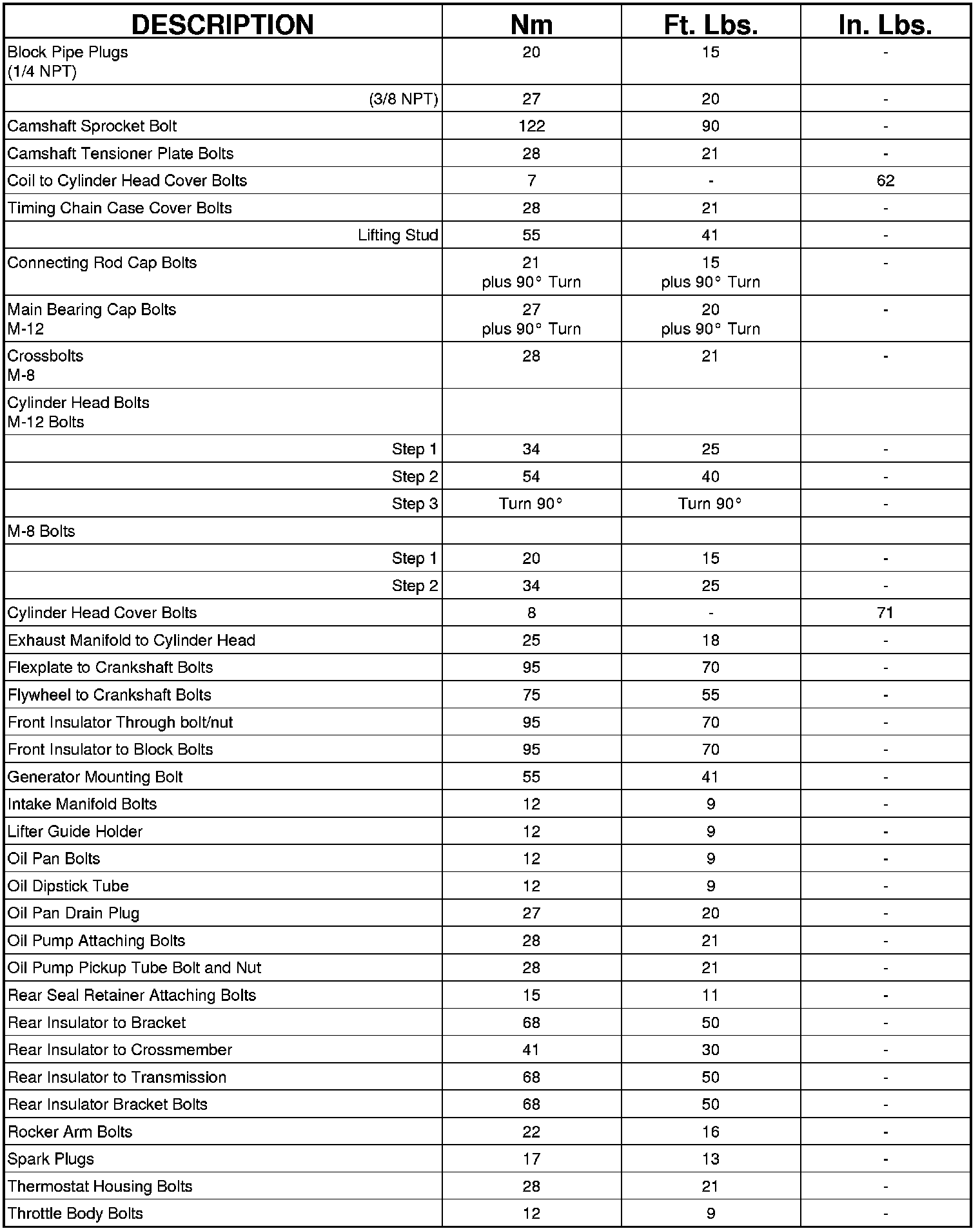 TORQUE CHART 5.7L ENGINE