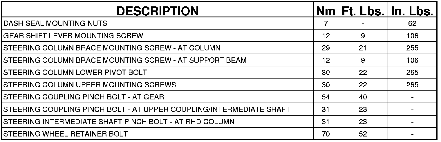 TORQUE SPECIFICATIONS