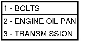 18. Install the transmission (3) to engine oil pan (2) bolts (1). Tighten to 39 Nm (29 ft.lbs.).