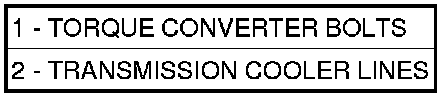 16. Install the remaining torque converter housing to engine bolts (2). Tighten to 39 Nm (29 ft.lbs.).