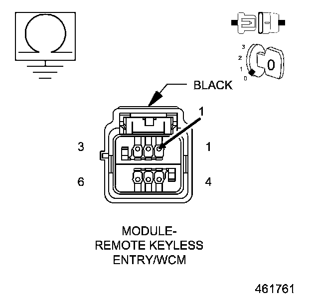1. Using a 12-volt test light connected to 12-volts, check the (Z943) Ground circuit in the RKE module connector.
