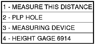 12. Measure and record vehicle's rear curb height. Measure distance (1) between top of Suspension Height Gage (4) and each frame rail at forward edge of Gage. This is the nearest point to the PLP hole (2).