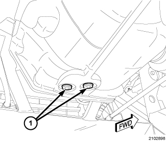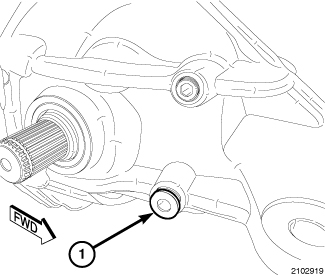 6. Remove rear axle fill plug (1) and fill rear axle with 0.07 L (2.3 oz.) of Mopar(R) Limited Slip Additive and 1.36 L (43.7 oz.) Mopar(R) Synthetic SAE 75W-140 Gear and Axle Lubricant.