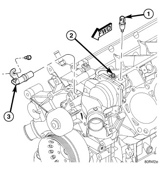 Install engine coolant temperature sensor. Tighten to 27 Nm (20 ft. lbs.) torque.