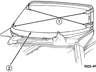1. Place replacement windshield into windshield opening and position glass in the center of the opening against the support spacers. Mark the glass at the support spacers with a grease pencil or pieces of masking tape and ink pen to use as a reference for installation. Remove replacement windshield from windshield opening.