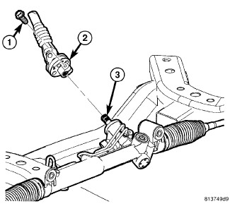 19. Slide the coupler from the lower intermediate shaft (2) onto the steering gear shaft (3) and install a new pinch bolt (1). Tighten the pinch bolt to 45 Nm (33 ft. lbs.).
