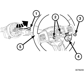 13. Install the steering wheel (5) onto the steering column.