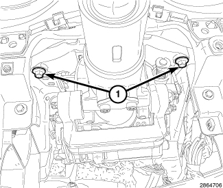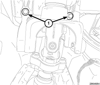 2. Install the two mounting bolts (1) and tighten all four mounting fasteners to 27 Nm (20 ft.lbs.).