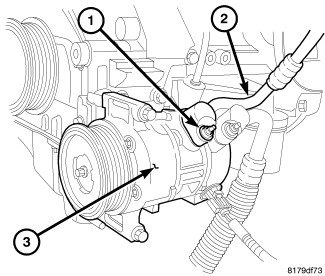 11. Connect the A/C discharge line (2) to the A/C compressor (3).