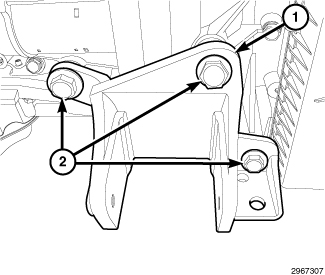 6. Install the engine mount bracket retainers (2).Tighten to 55 Nm (41 Ft. Lbs.).