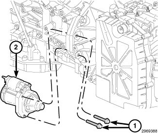 2. Install the starter retainers (1).Tighten to 55 Nm (40.5 Ft Lbs).