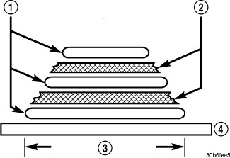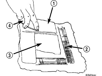 1. Cover waxed paper (4) or plastic with adhesive backed nylon mesh (dry wall tape) (2) larger than the patch required (3).