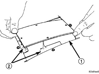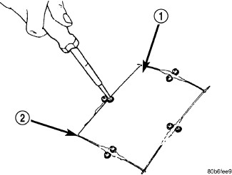 13. Position patch in cutout (1) against support squares (2) and adjust patch until the gap is equal along all sides.