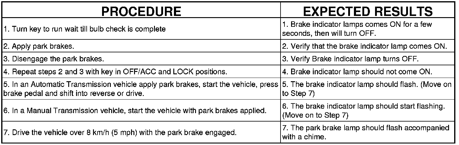 - Turn ignition switch to the ON position and apply the parking brake. The lamp should light.