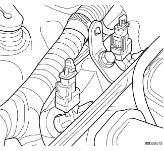 2. To remove connector pull the red colored slider away from injector (1). While pulling the slider, depress tab (2) and remove connector (3) from injector. The factory fuel injection wiring harness is numerically tagged (INJ 1, INJ 2, etc.) for injector position identification. If harness is not tagged, make note of wiring location before removal.
