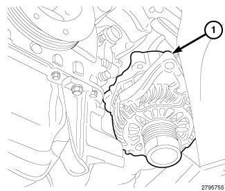 15. Slide the generator (1) down and out of vehicle.