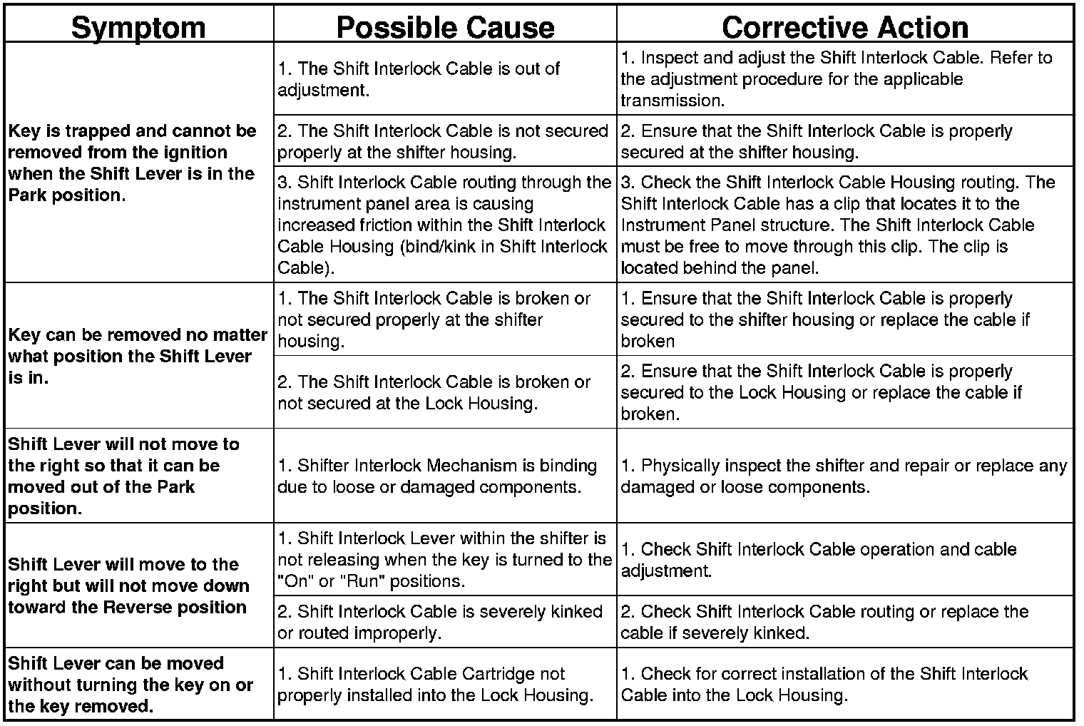 SHIFT INTERLOCK CABLE DIAGNOSIS