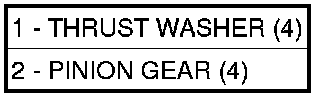 7. Remove pinion gear (2) and thrust washers (1).