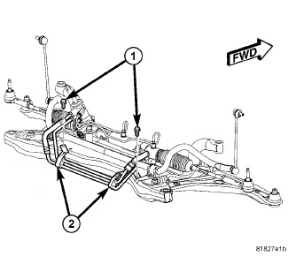 9. Position the stabilizer bar (2) back into place and install the bushing bolts (1).