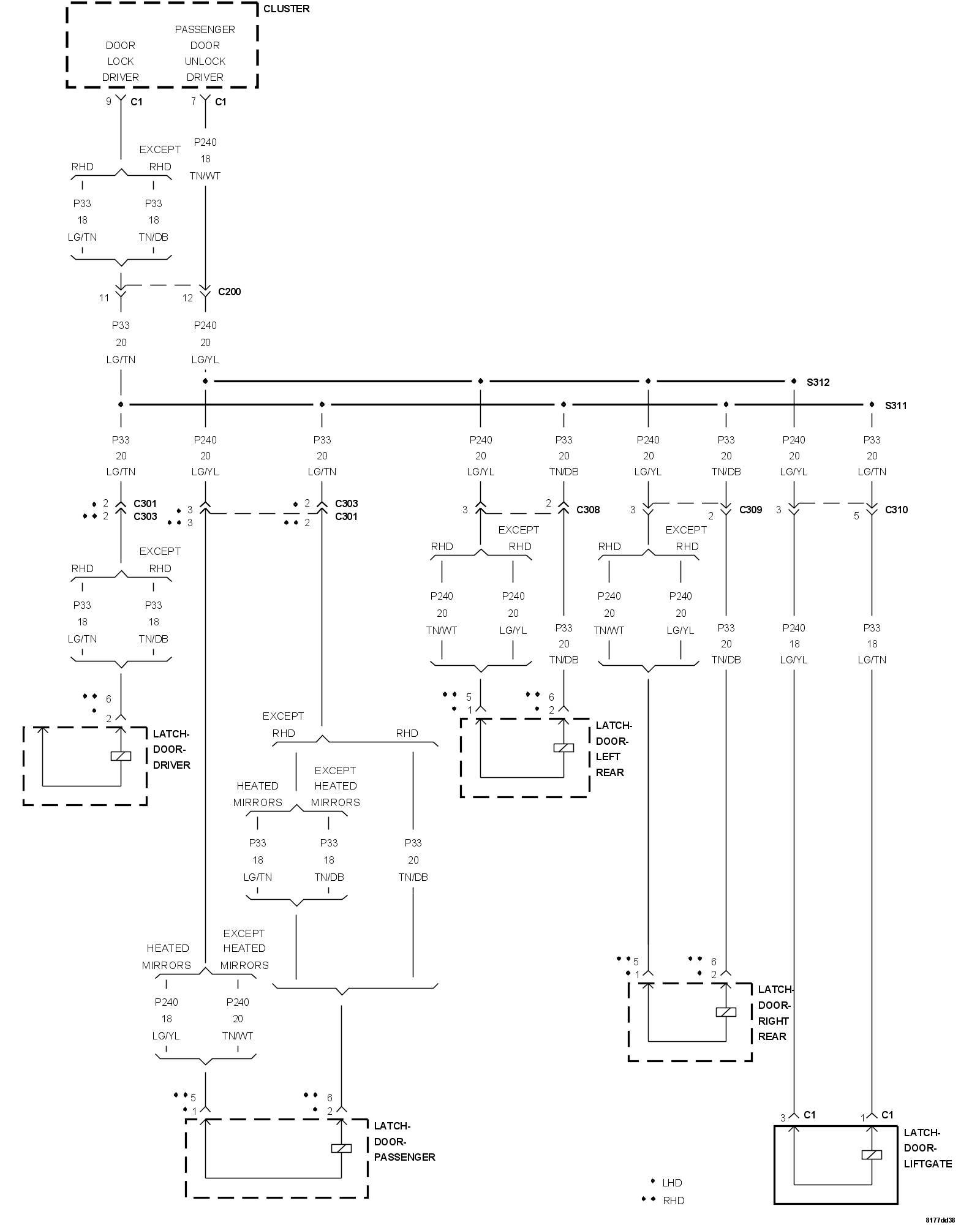- Repair the (P33) Door Lock Driver or the (P240) Passenger Doors Unlock Driver circuit for an open.