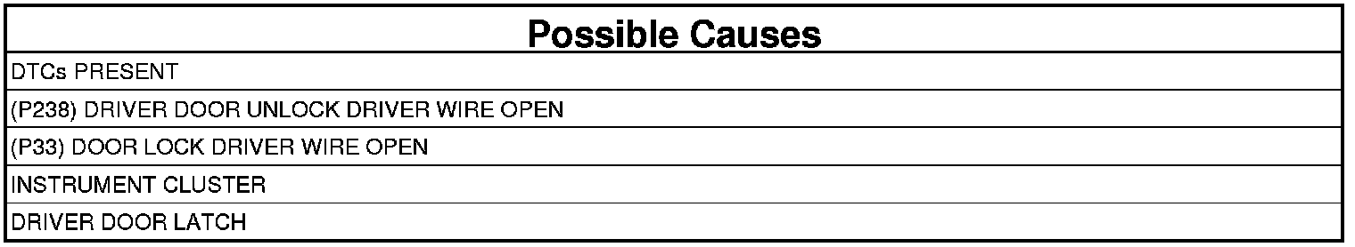 - Repair the (P238) Driver Door Unlock Driver wire for an open.