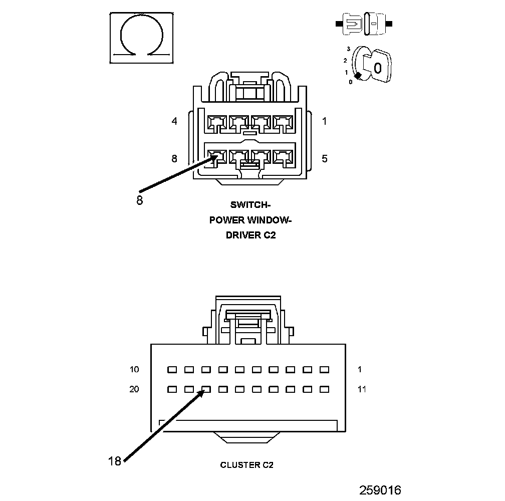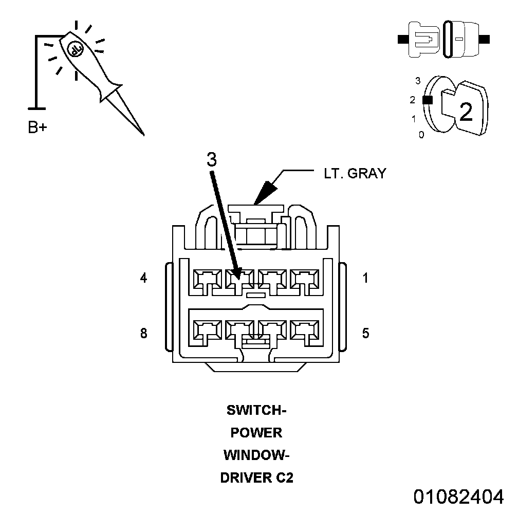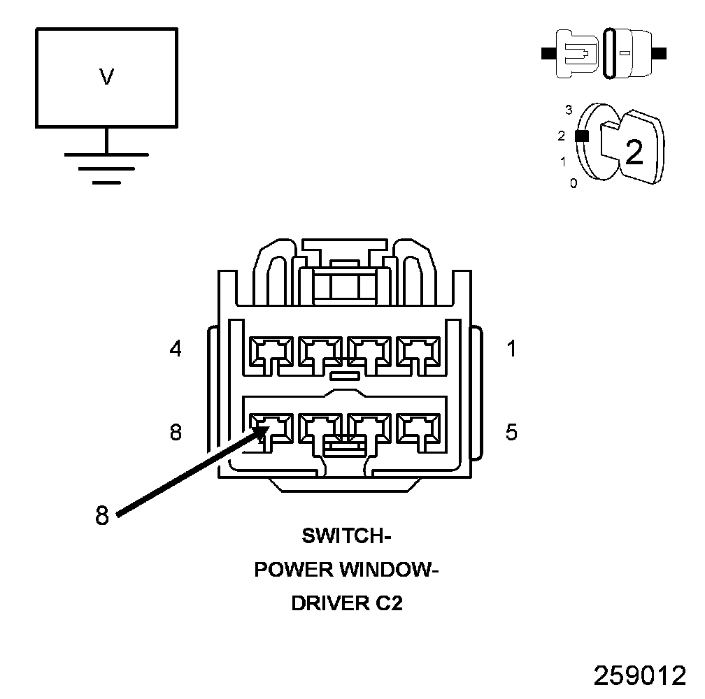2. Using a 12-volt test light connected to 12-volts, check the (Z961) Ground circuit in the Driver Window/Door Lock Switch C2 connector.