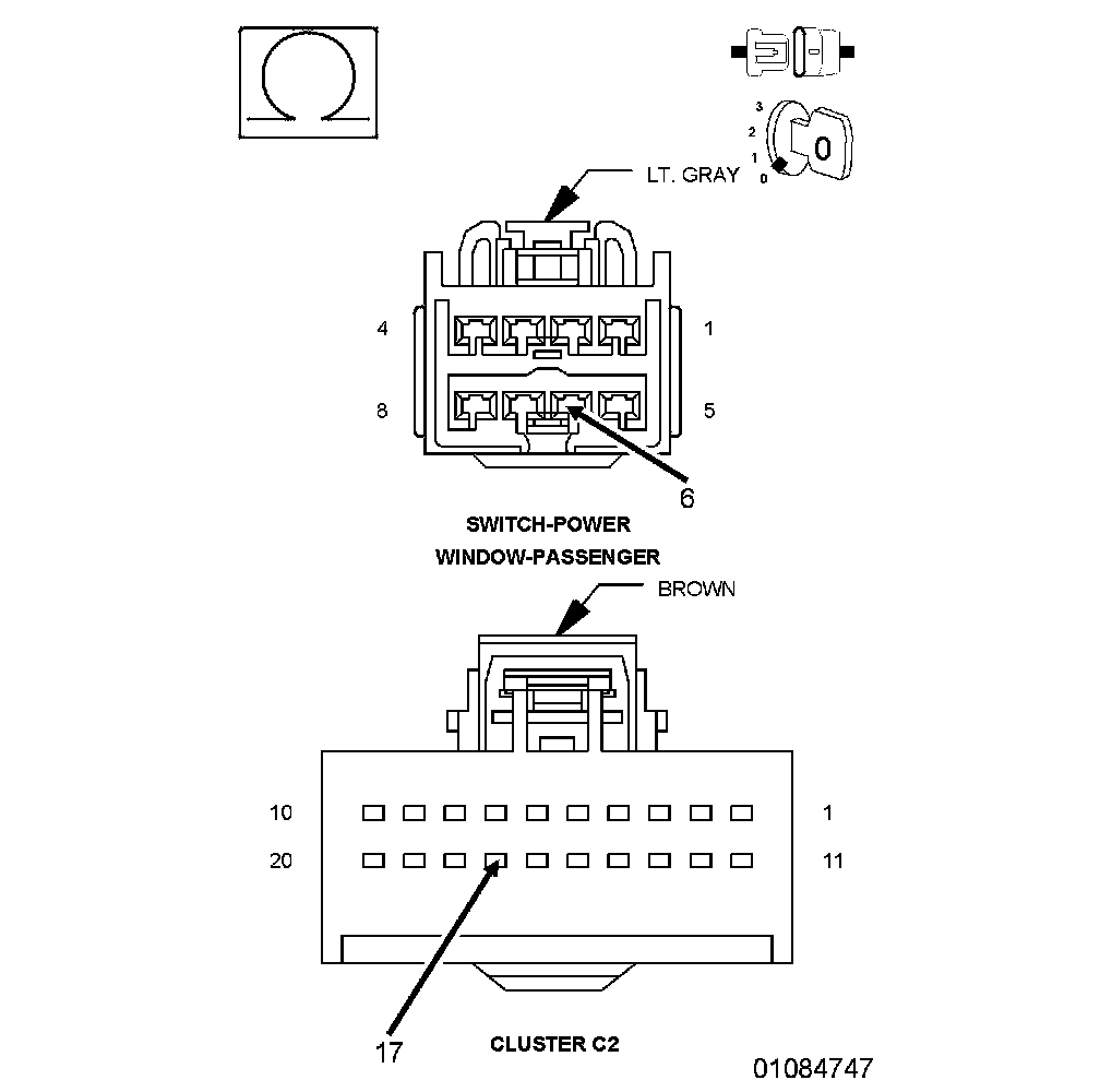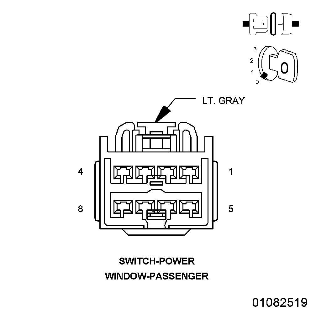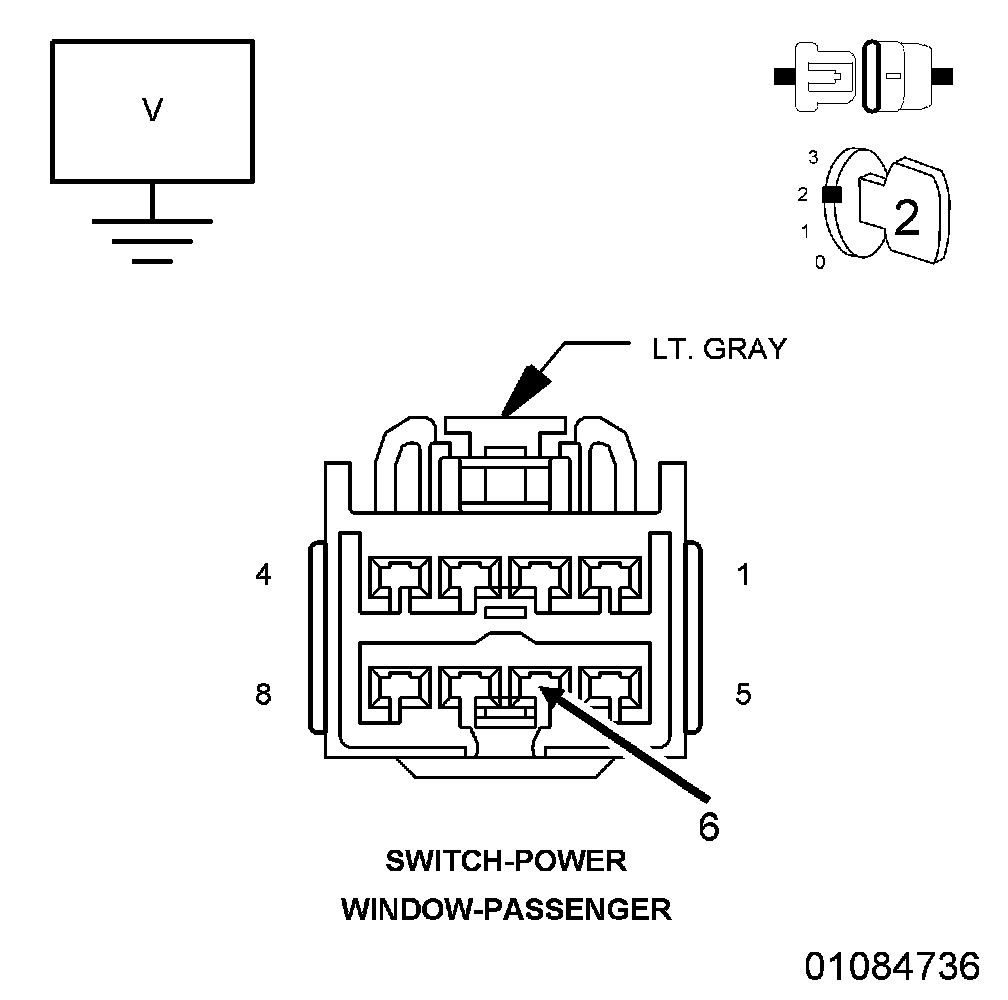 2. Using a 12-volt test light connected to 12-volts, check the (Z960) Ground circuit in the Passenger Window/Door Lock Switch connector.