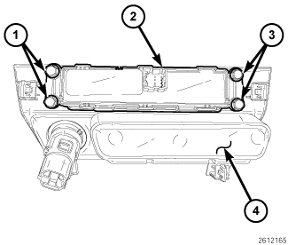 1. Position the accessory switch bank (2) onto the back of the bezel (4).