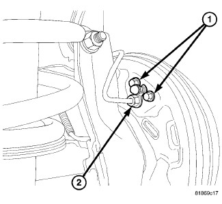 7. Connect the brake tube (2) to the wheel cylinder (1). Tighten the tube nut to 17 Nm (150 in. lbs.).