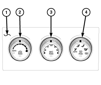 - a rotary control for manual and automatic mode control of the discharged air (4). This control also contains a push button function for turning the rear window defogger system on and off. The control contains an indicator lamp that illuminates when the rear window defogger system is in operation.