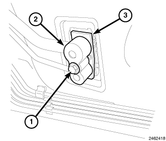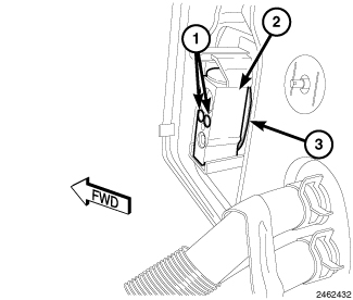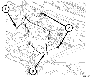 7. Position the heat shield (3) onto the studs (2) located on the dash panel in the engine compartment.