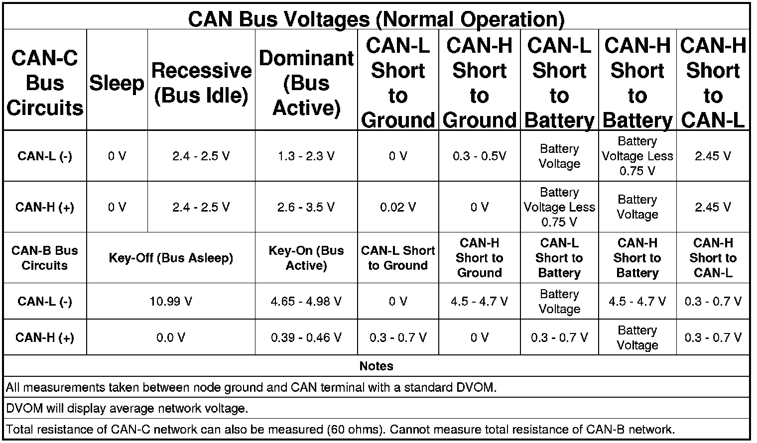 The termination resistance of two dominant nodes is combined in parallel to provide a total of about 60 ohms. This resistance value may vary somewhat by application, depending upon the number of non-dominant nodes on the CAN-C bus. On the CAN-D bus (or Diagnostic CAN-C) all of the 60 ohm termination resistance is present in the Central GateWay (TIPMCGW).
