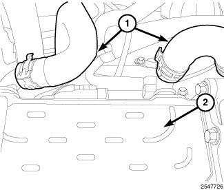 7. Connect coolant hoses (1) to the EGR cooler (2).