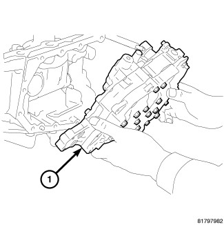 61. Install the valve body assembly (1)(Figure 46) up from the bottom side and install it into the transaxle case.