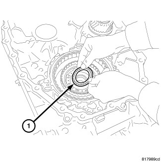 19. Install the dish plate (1) with the convex side down onto the reverse brake piston.