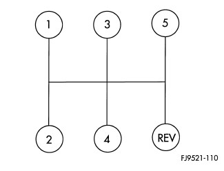 The T355 transaxle shift pattern (Figure 2) is a modified H-pattern. Overdrive fifth and reverse gears are in-line and outboard of the first through fourth gear positions.