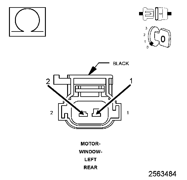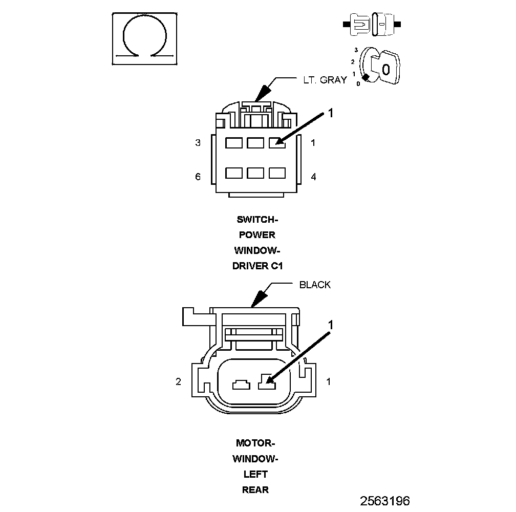 1. Measure the resistance between the Master Window Switch Left Rear (Down) circuit in the Driver Window Switch C1 connector and the Left Rear Window Driver (Down) circuit in the Left Rear Window Motor connector.