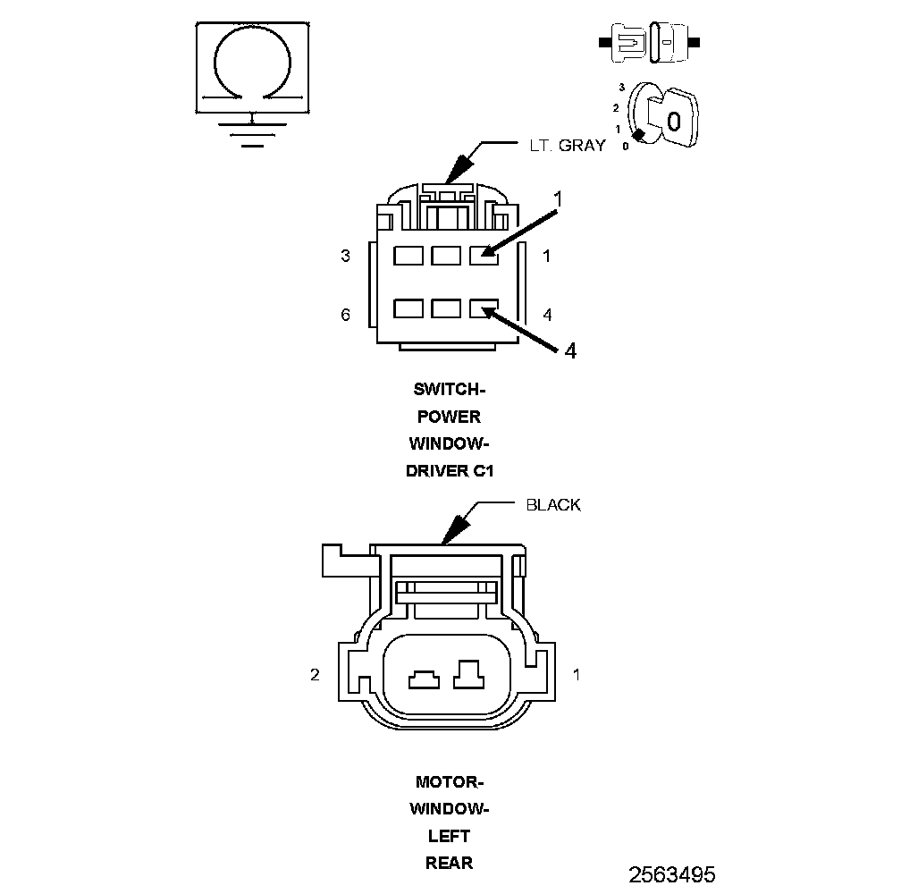 - Repair the short to ground in the Left Rear Window Driver (Up) or (Down) circuit between the Motor and the Rear Window Switch.