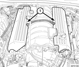 2. Lift the engine cover retaining grommets off the ball studs and remove the engine cover (2).