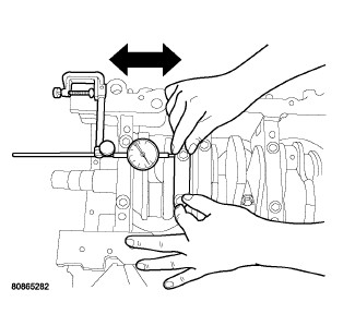 4. Move the connecting rod forward to the limit of travel and read the dial indicator. Compare the measured side clearance to the specification Engine Specifications