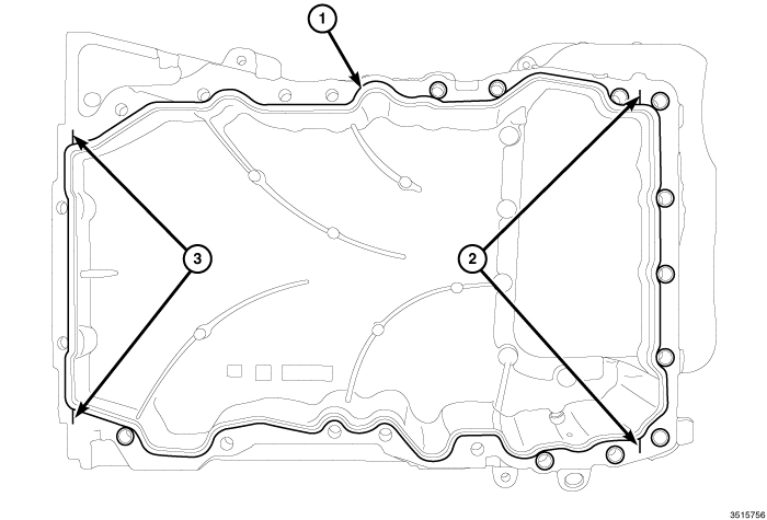 2. Remove all residual sealant (1) from the upper and lower oil pans Procedures