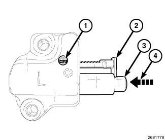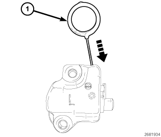 3. When the slot is aligned with the hole in the tensioner body, insert Tensioner Pin (1) to hold the rack and piston in the retracted position.