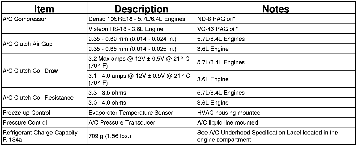 *Always use the type of PAG oil listed for the model being serviced. See A/C Underhood Specification Label located in the engine compartment. Do not mix different types of PAG oils