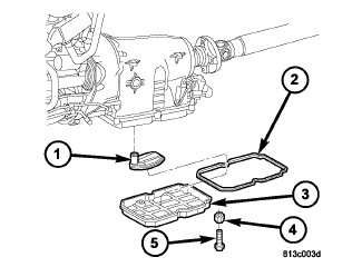 5. Remove the transmission oil filter (1) and o-ring from the electrohydraulic control unit.