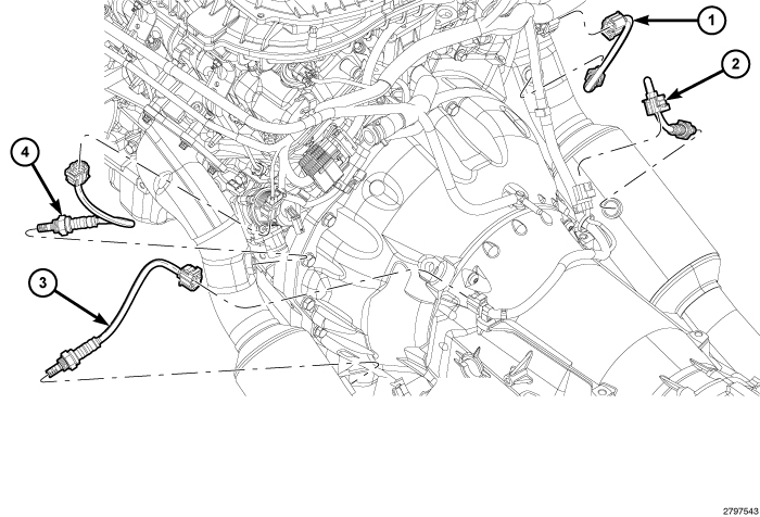 The engine is equipped with four heated oxygen sensors: