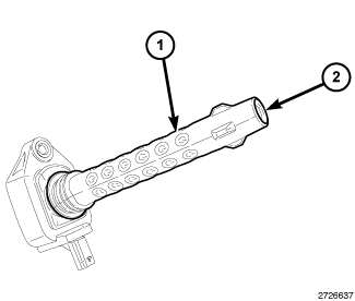 4. Position the ignition coil (2) into the cylinder head cover opening. Using a twisting action, push the ignition coil onto the spark plug.