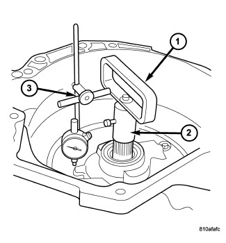 33. Measure input shaft end-play. NOTE: If end-play is incorrect, transmission is incorrectly assembled, or the geartrain end-play shim is incorrect. The geartrain end-play shim is selective.